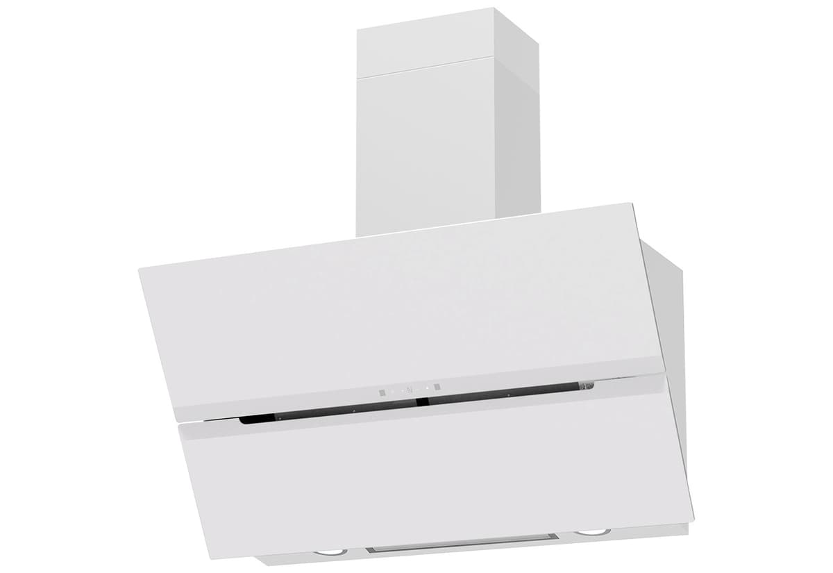 • Vertikaalinen seinään kiinnitettävä liesituuletin mattavalkoisesta lasista ja valkoiseksi maalatusta teräksestä, 90 cm leveä
