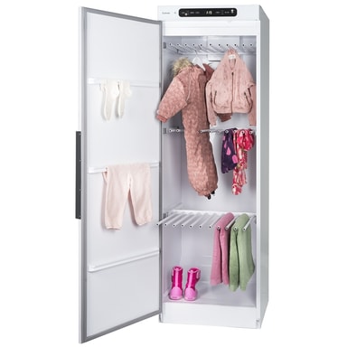 Cylinda-kuivauskaappi TS2190ECOVVIT huolehtii koko perheen vaatteista ja kengistä 6 kg:n kapasiteetin, kolmen ulosvedettävän tangon ja kolmen ovitelineen ansiosta. Kaapin anturi ilmoittaa, kun vaatteet ovat täysin kuivat.Tutustu ominaisuuksiin