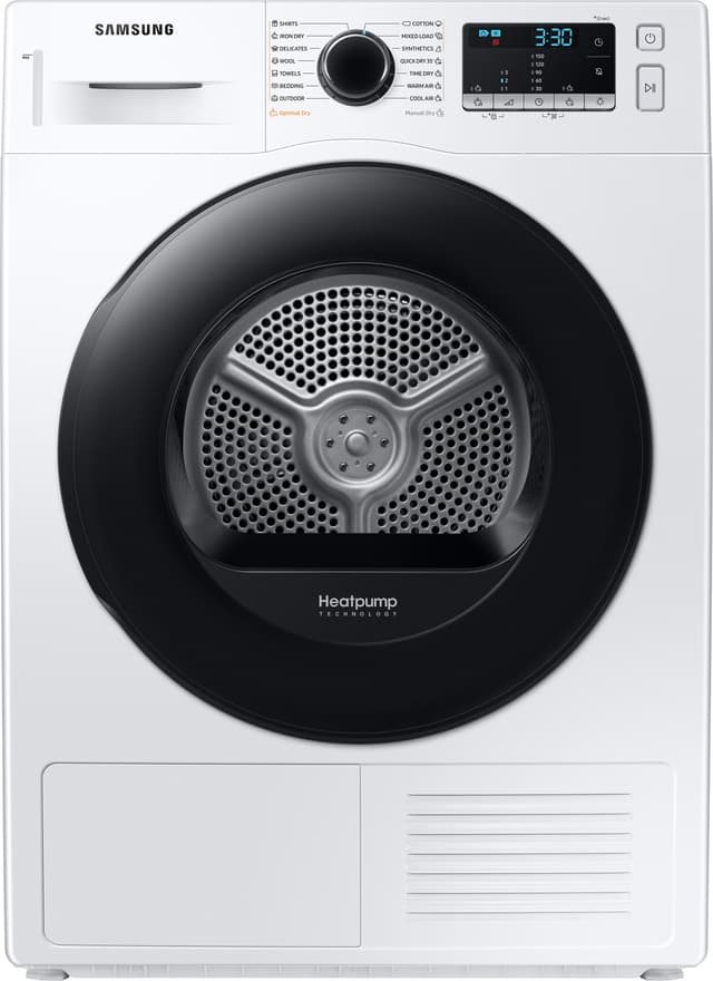 Samsung-kuivausrumpu DV95TA040AE kuivaa vaatteesi hellävaraisesti Optimal Dry -sensorien avulla. Siinä on myös Quick Dry 35 -pikaohjelma ja suuri täyttömäärä.