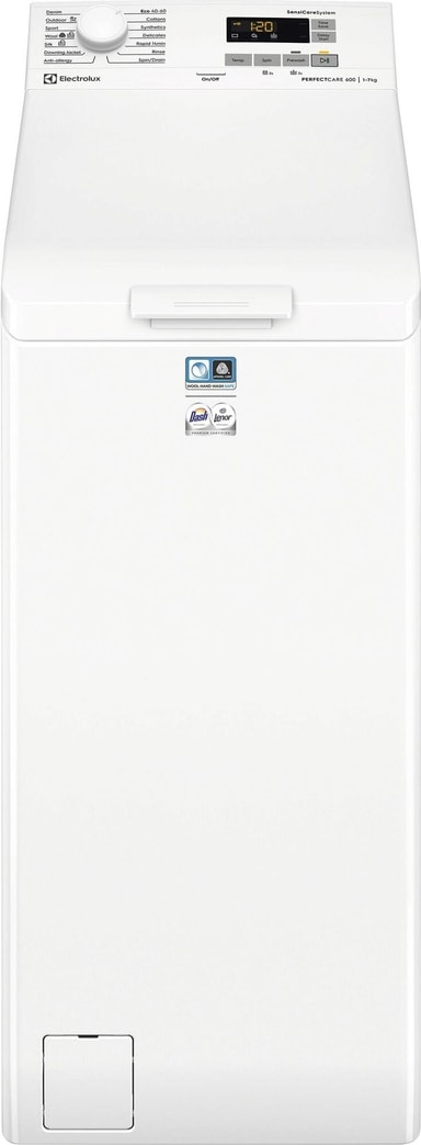 Päältä täytettävä PerfectCare 600 pesukone SensiCare-järjestelmällä säätää ohjelman keston täyttömäärän mukaan. Se käyttää oikean määrän vettä, aikaa ja energiaa täydellisen lopputuloksen saavuttamiseksi, oli täyttömäärä mikä tahansa. Vaatteet säilyvät uudenveroisina pitempään.