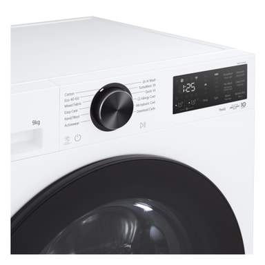Tämän LG-pesukoneen kapasiteetti on suuri, 11 kg, joten voit pestä paljon vaatteita samaan aikaan ja automaattinen annostelu, TurboWash360™ ja Steam™Tutustu ominaisuuksiin