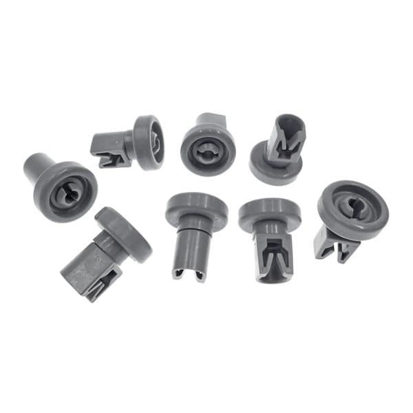 AEG Astianpesukoneen Yläkorin Pyöräsarja Rikkoutuneet pyörät estävät astianpesukoneen yläkorin tasaisen liikuttelun. Pyörien vaihtaminen käy helposti: vanhat pyörät napsahtavat irti yhtä kätevästi kuin uudet pyörät paikalleen. Alkuperäinen AEG:N varaosa Malli: 50286967000