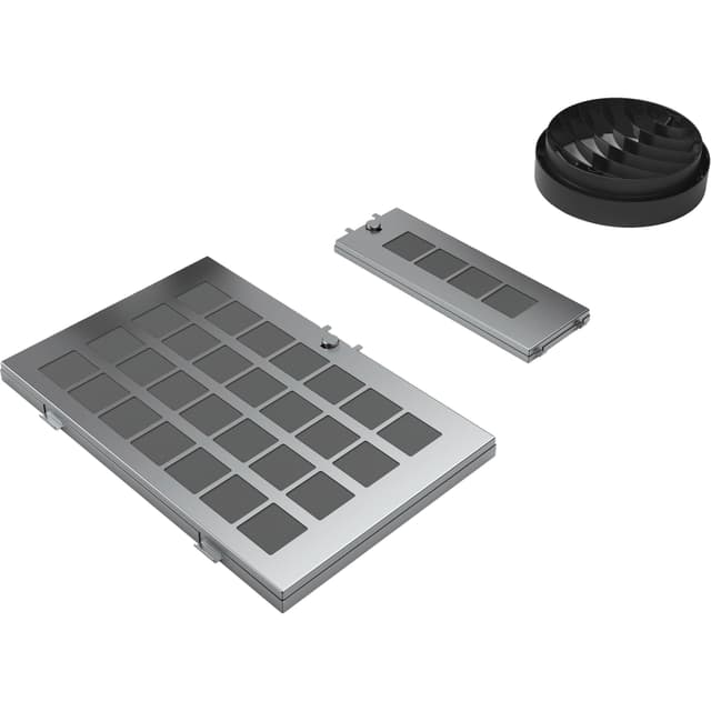 Pidä huolta siitä, että Siemens-liesituulettimesi toimii moitteettomasti. Suodatinpakkauksessa on 2 uudelleenkäytettävää aktiivihiilisuodatinta sekä diffuuseri. Suodattimet sopivat huoneilmaan palauttavalla metodilla toimivaan liesituulettimeen.