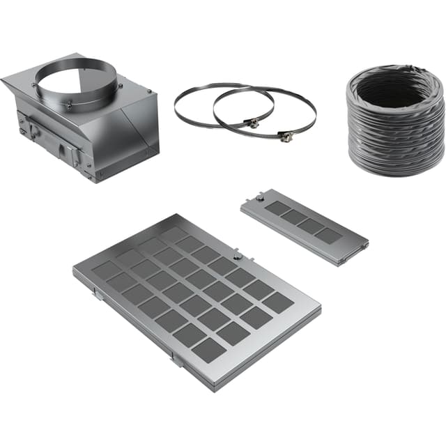 Suodatinpakkaus pitää huoneilmaan palauttavan Siemens-liesituulettimesi paremmassa kunnossa. Pakkaus sisältää 2 uudelleenkäytettävää aktiivihiilisuodatinta, joustavan putken, ilmanohjaimen sekä kiinnitysmateriaalit.