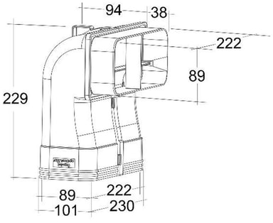 'Yläpuolinen 90° Ztove-liitin ZD20110 asennetaan keittotason taakse ohjaamaan ilmavirtaa alaspäin. Se sopii Ztove-keittotasolle alasvetojärjestelmällä ja on yhteensopiva 89 x 222 mm ilmanpoistojärjestelmää käyttävien keittotasojen kanssa.'Tutustu ominaisuuksiin