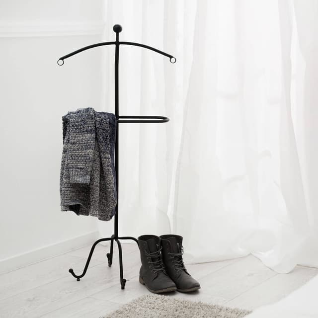 Tämä pulverimaalattua metallia oleva vaateteline luo järjestystä vaatekaappiisi. Voit ripustaa vaatetelineeseen lukuisia vaatekappaleita, kuten paitoja, puseroita, takkeja ja housuja. Vaatteet säilyttävät muotonsa ja tuulettuvat ripustettuna.