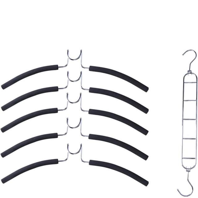 Älykäs ripustin, jossa 5 pidikettä yhdessä ripustimessa. Säästää tilaa kaapissa, koska yhteen ripustimeen mahtuu 5 vaatetta.