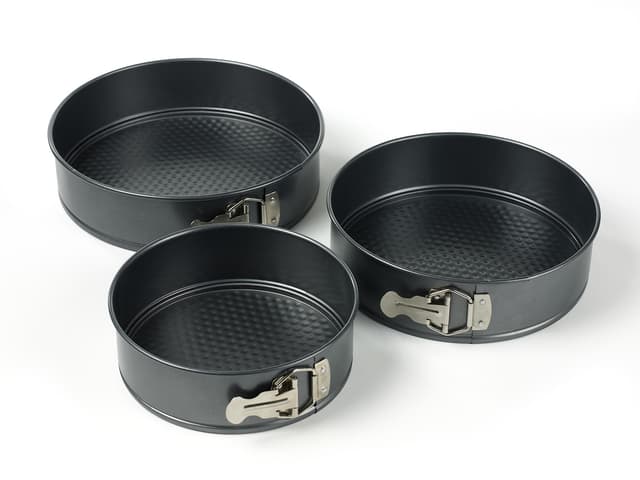3 piece spring form set: dia. 20, Dia. 24 and dia. 26 cm.Non-stick coating.Max. 230 degreesHand washing is recommended.Tutustu ominaisuuksiin