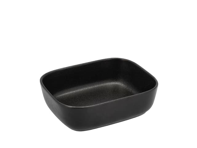 Ovenproof dish in black glazed stoneware. 19 x 15 x 5.6 cm The dish is perfect for smaller servings of lasagna, gratins, chicken, roasts, roast vegetables - in fact, for almost anything that can be cooked in an oven. The rustic look is also decorativ