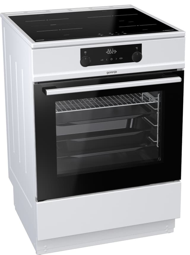 Gorenje EIT8648WN -liedessä on suuri 71 litran uuni langallisella paistolämpömittarilla sekä 60 senttimetriä leveä induktiokeittotaso neljällä keittoalueella ja booster-pikakuumennuksella. AquaClean-toiminnolla uuni puhdistuu kuin itsestään höyryn avulla.