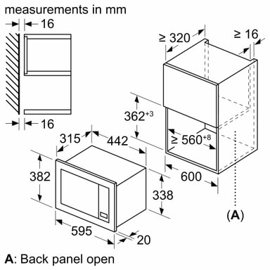 • Kaluste: asennetaan 60 cm leveään kaappiin (min. syvyys 55 cm), Asennetaan 60 cm leveään seinäkaappiin (min. syvyys 30 cm)