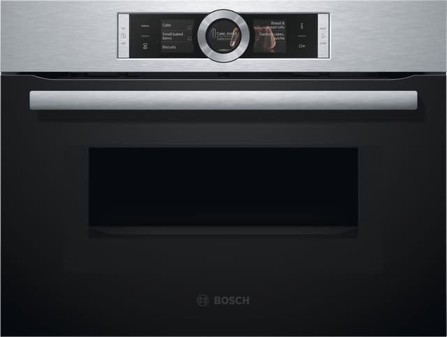 Kompakti, kalusteisiin sijoitettava Bosch AccentLine CMG676BS1 -yhdistelmäuuni mikrotoiminnolla. Monipuoliseen ruoanvalmistukseen.