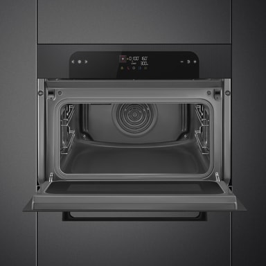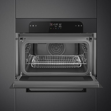 Kompakti sisäänrakennettu uuni, joka yhdistää perinteisen kypsennyksen ja mikroaaltotoiminnon nopeisiin ja upeisiin tuloksiin
