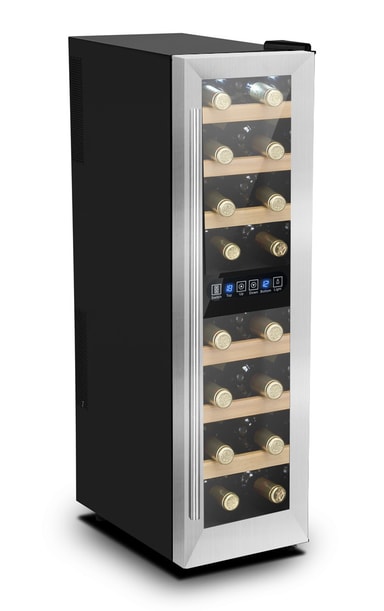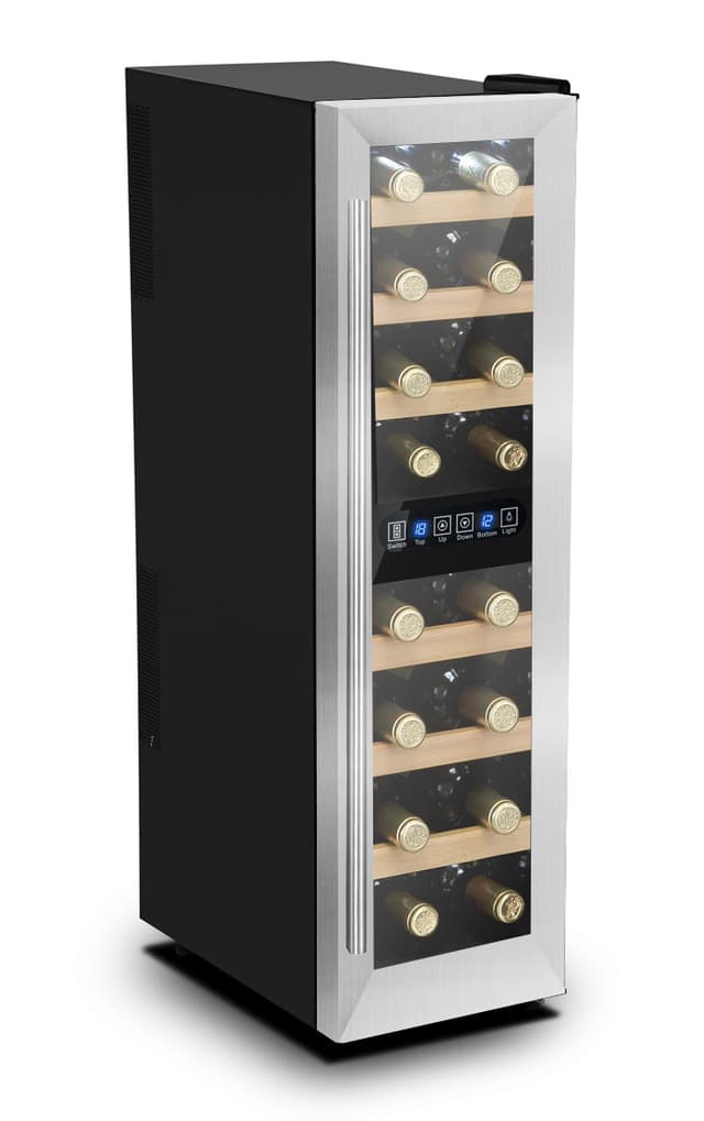 Tämä viinikaappi sopii tyylipuhtaaseen kotiin. Yksityiskohdat kuten puuhyllyt, LED-valaistus ja kosketusnäyttö luovat ylellistä tunnelmaa ja tekevät viinikaapista hintansa arvoisen! Viinikaapin tärinätaso on alhainen Peltier-tekniikan ansiosta, ja siinä on tilaa 16 pullolle.