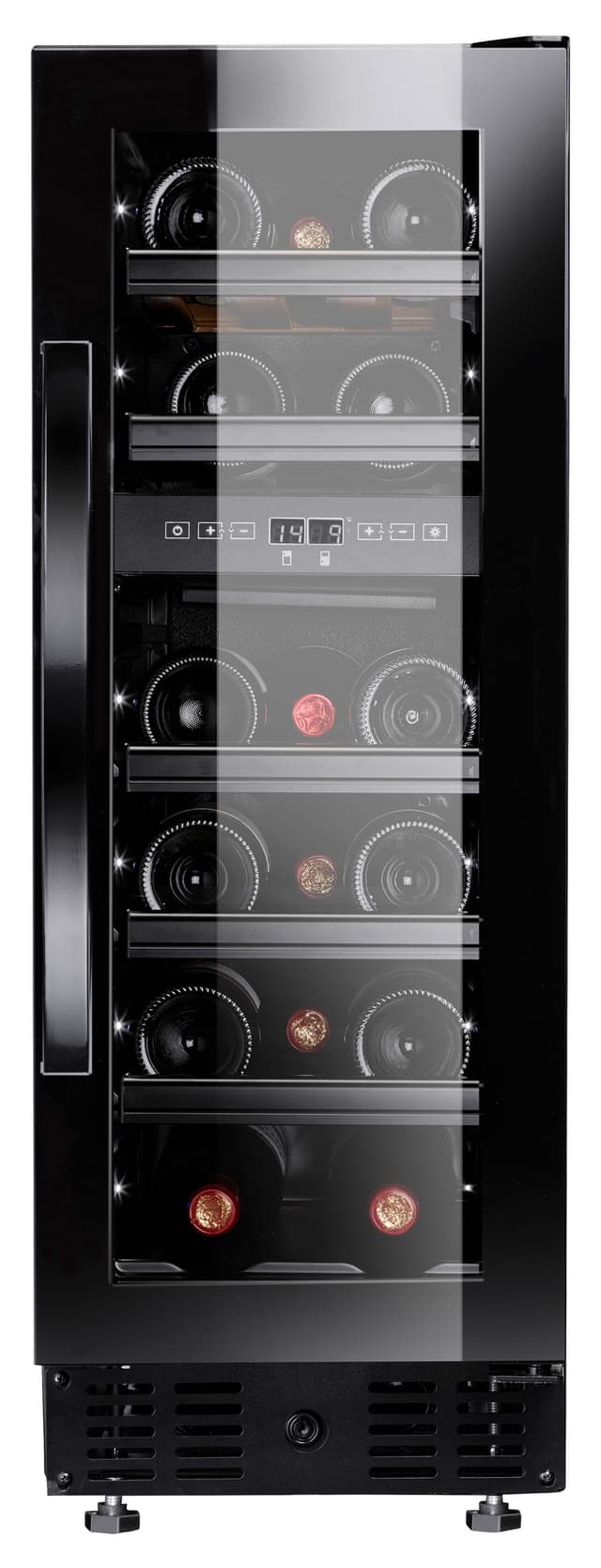 LED-näyttö: LED-näyttö ja viinikaapin sisälle sijoitettu kosketusohjaus tekevät laitteen käytöstä vaivatonta.