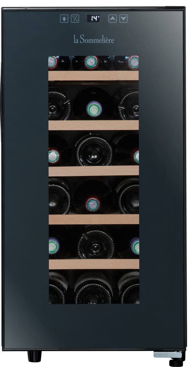 Vapaasti sijoitettava La Sommelière -viinikaappi tarjoaa kompaktin muotoilun ja pitää viinikokoelmasi turvassa yhdessä säädettävässä lämpötila-alueessa, jota voit säätää 11 ja 18 °C välillä, sekä viisi puista hyllyä. Laitteessa on tilaa 18 viinipullolle, ja matalan melutason ansiosta kotisi pysyy myös mukavan hiljaisensa.