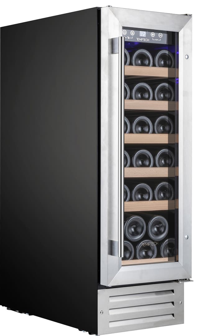 Elegantissa Temptech Premium -viinikaapissa on tilaa jopa 19 viinipullolle. Laitteen ominaisuuksiin lukeutuu UV-suojattu ovi sekä yksittäinen lämpötila-alue, jonka ansiosta lämpötila ja kosteustaso pysyvät juuri sopivilla tasoilla.