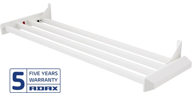 Adax Basic -kuivausteline 80 W teholla kuivaa nopeasti märät kengät tai vaatteet, kuten hanskat tai hatut. Käytännöllinen ja kestävä teline on 87 cm pitkä, sisältää on/off-kytkimen ja on helppo kiinnittää seinälle sisältyvien ruuvien ja seinätelineen avulla. Tuote sisältää viiden vuoden takuun.