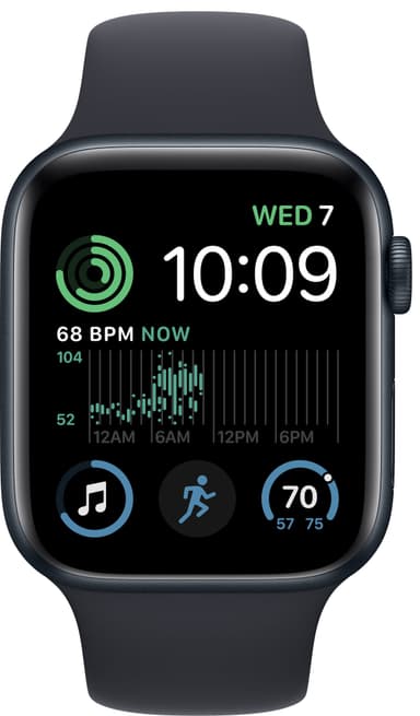 Apple Watch SE 2nd Gen -älykellon avulla voit elää aktiivisemmin ja olla valmis tulevaan. Pysy yhteydessä muhin, seuraa kuntoilua, näe mihin olet menossa ja mittaa sykettäsi kaikkina päivän aikoina.Tutustu ominaisuuksiin