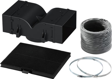 • Asennussarja aktiivihiilisuodattimella huoneilmaan palauttavaa asennusta varten: puhdistaa hajut tehokkaasti.