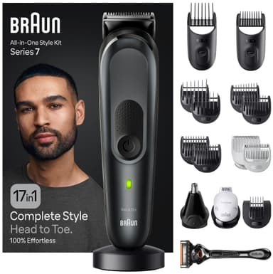 Braun Series 7 -monitoimitrimmerissä yhdistyvät partatrimmeri, hiustrimmeri ja vartalokarvojen ajokone. Lukuisten lisävarusteiden, AutoSense-teknologian ja ProBlade-terävyyden ansiosta tässä trimmerissä on kaikki tarvitsemasi.Tutustu ominaisuuksiin