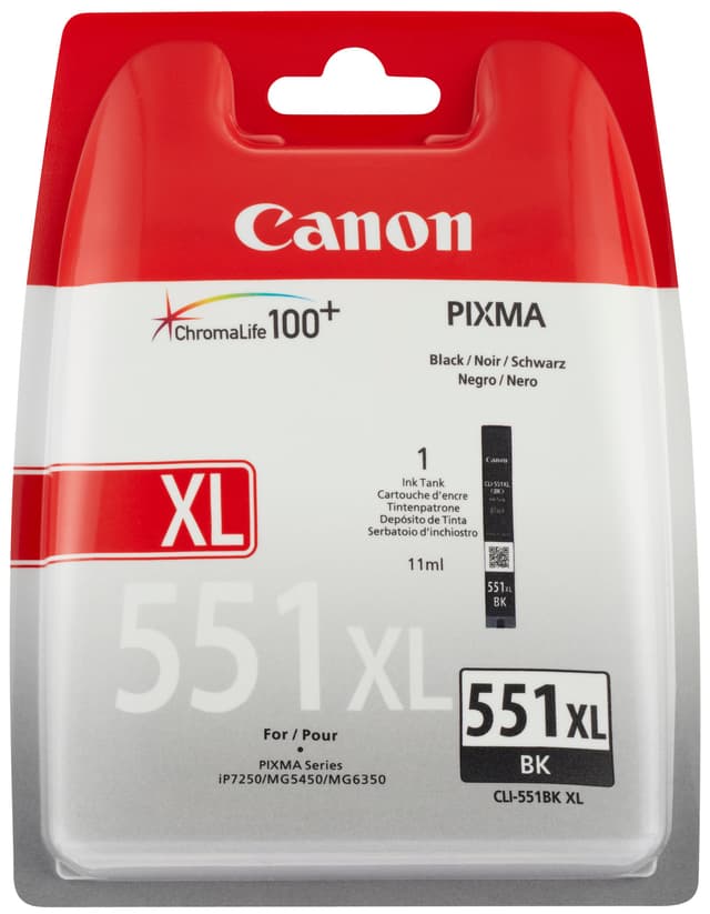 Riittoisa Canon CLI-551XL mustepatruuna Canon Pixma-sarjan mustesuihkutulostimille. Noin 1130 sivun tulostukseen.Tutustu ominaisuuksiin
