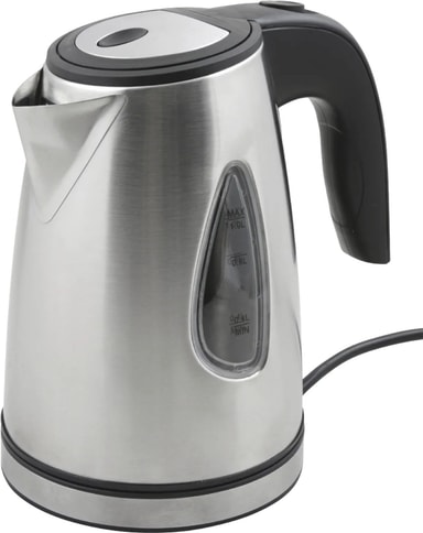 Klassinen ruostumattomasta teräksestä valmistettu muotoilu tekee siitä tyylikkään lisän mihin tahansa kotiin.. Keittimessä on myös läpinäkyvä vesimäärän ilmaisin ja pohjalevy.