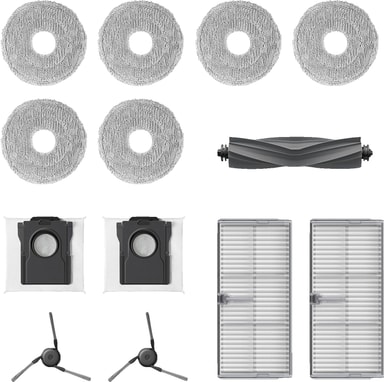 Dreame X40 -pölynimurin lisävarustesarjassa on kumiharja lattian puhdistamiseen, 2 sivuharjaa reunoille, 2 pölylaatikon suodatinta hienoille hiukkasille ja 3 moppityynyä monipuoliseen moppaamiseen, mikä takaa tehokkaan ja perusteellisen puhdistuksen.