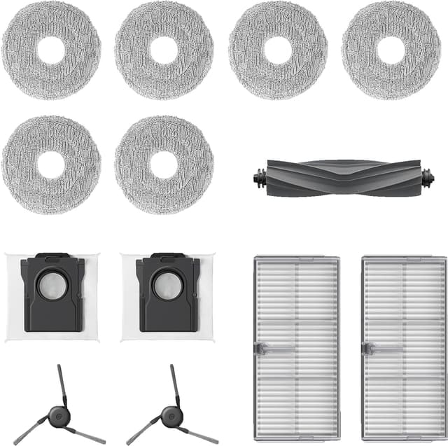 Dreame X40 -pölynimurin lisävarustesarjassa on kumiharja lattian puhdistamiseen, 2 sivuharjaa reunoille, 2 pölylaatikon suodatinta hienoille hiukkasille ja 3 moppityynyä monipuoliseen moppaamiseen, mikä takaa tehokkaan ja perusteellisen puhdistuksen.
