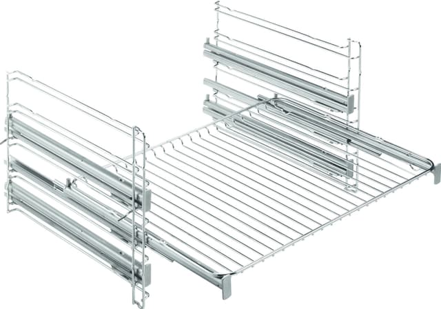Teleskooppikannattimen avulla voit tarkkailla ruoan valmistumista helposti ja turvallisesti. Teleskooppikannattimen avulla pellin ja ritilän käsittely on helpompaa. Napsautetaan paikoilleen XXL ja kompakti uunien pellinkannattimiin.