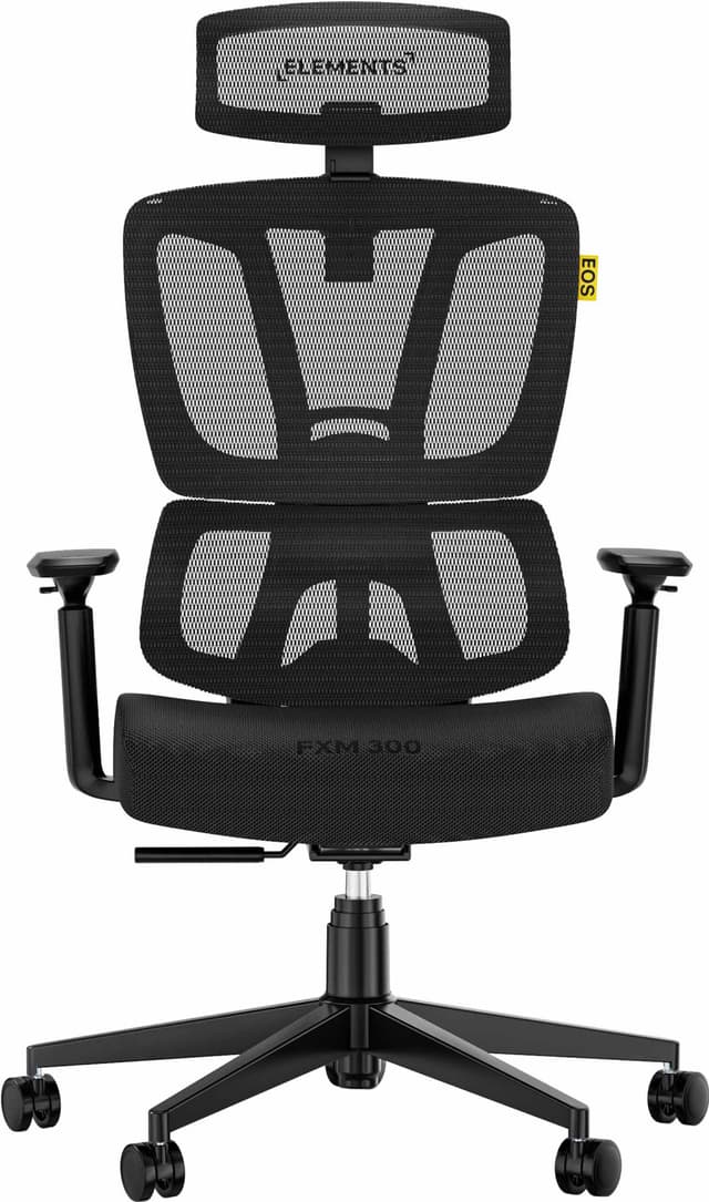 Elements FRX 300 Mesh -pelituolissa on 1D-käsinojat sekä säädettävä 2D-niskatuki. Pelituolin korkeus on säädettävissä, ja se kantaa enintään 130 kg painon.Tutustu ominaisuuksiin