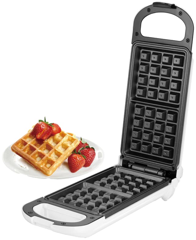 Metallisessa tarttumattomassa vohveliraudassa on käännettävä muotoilu, jonka ansiosta vohvelit on helppo kääntää ja varmistaa tasainen kypsyminen. Liukastumista estävät jalat pitävät sen tukevasti työtasolla ja tarttumaton pinnoite tekee siitä helposti puhdistettavan.