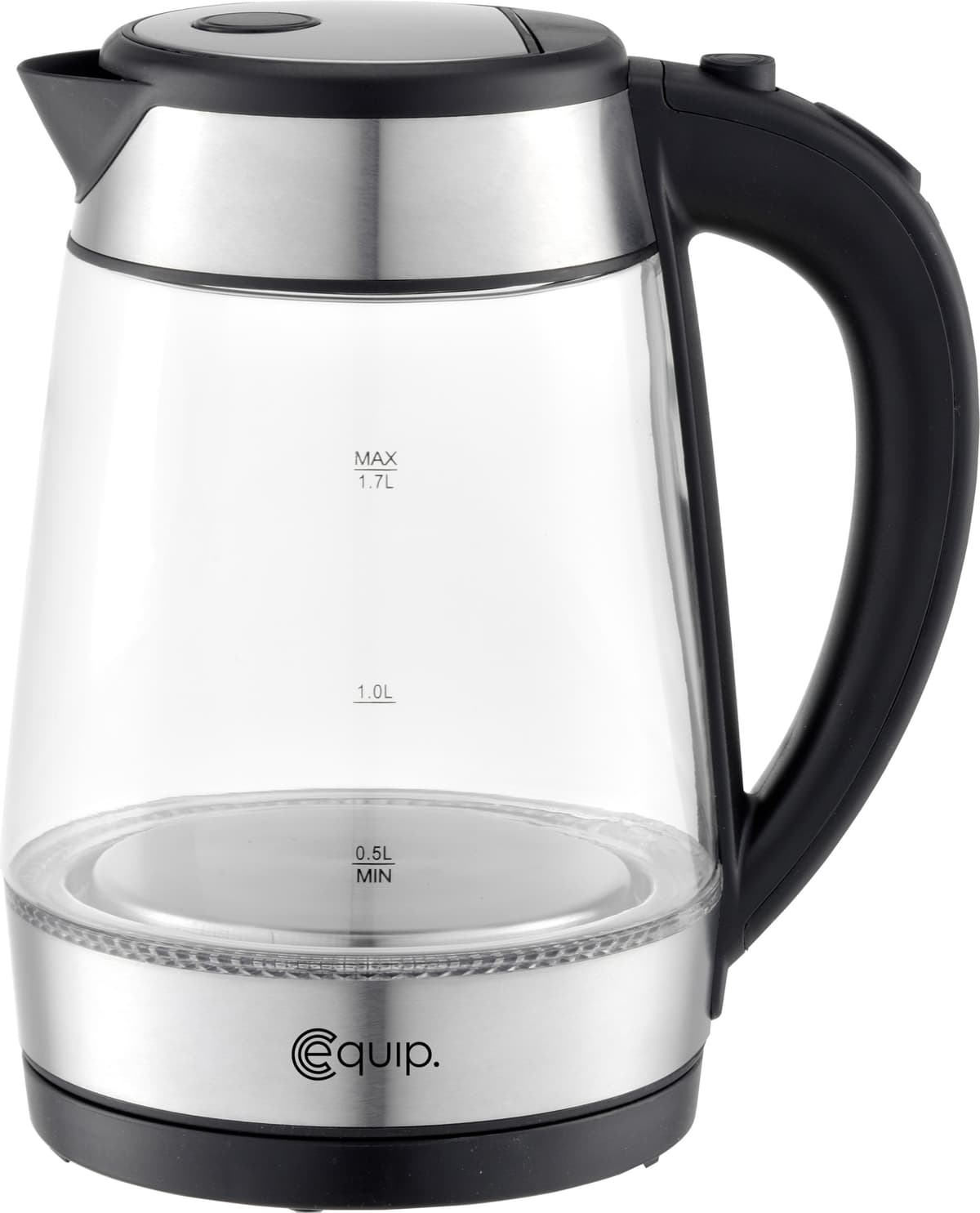 Equip-vedenkeitin on suunniteltu päivittäiseen käyttöön ja tehty lämmönkestävästä lasista. se tarjoaa nopean veden kiehumisen, LED-valaistuksen, automaattisen sammutuksen, kiehumis- ja kuivakäyntisuojan sekä 360° kääntyvän jalustan.Tutustu ominaisuuksiin