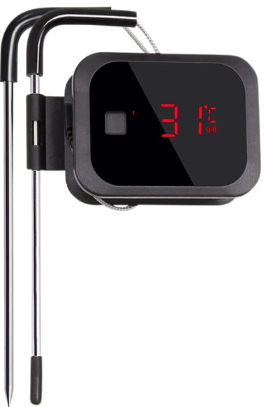 Digitaalisen FCC BBQ -lämpömittarin avulla saat tarkan tiedon grillaamasi ruuan lämpötilasta. Lämpömittarissa on sisäänrakennettu Bluetooth ja älykäs sovellus, jotka tarjoavat kätevän ohjauksen älypuhelimesi kautta.Tutustu ominaisuuksiin