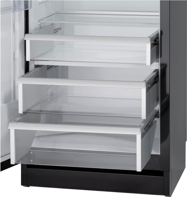 Varusta 55 tai 75 cm leveä Festivo-jääkaappisi Festivo hevikylmä -vetolaatikoilla. Kaksi niistä on omistettu hedelmien ja vihannesten säilytykseen, ja yksi tuotteille, jotka tarvitsevat erityiset kylmät olosuhteet, kuten maitotuotteet, liha ja kala.
