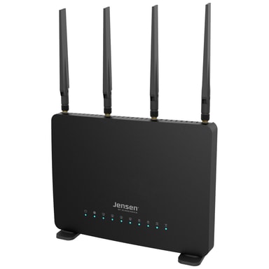 Jensen Lynx 9000 WiFi -reititin tarjoaa nopean, kattavan ja luotettavan verkkoyhteyden. Reititin toimii kahdella taajuudella ja tarjoaa jopa 2,6 Gbps tiedonsiirtonopeuden ja on siksi erinomainen valinta mm. Full HD -median suoratoistoon ja viiveettömään verkkopelaamiseen. Reitittimessä on pelkistetty muotoilu ja se voidaan kiinnittää seinään. Neljä ulkoista antennia kattaa suuremmankin alueen.