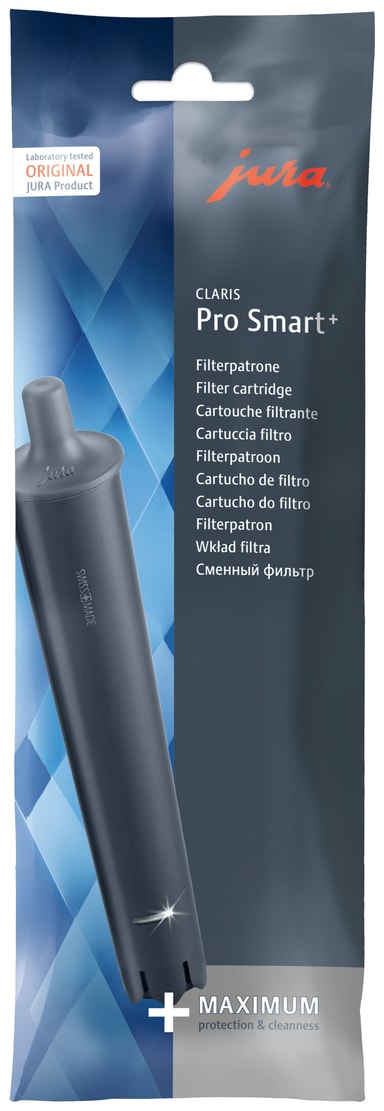 Jura Claris Pro smart+ -vesisuodatin on edistyksellinen työkalu Jura-kahvinkeittimen vesisäiliön veden suodattamiseen. Se säilyttää hyödylliset mineraalit ja varmistaa, ettei sinun tarvitse poistaa kalkkia kahvinkeittimestäsi.