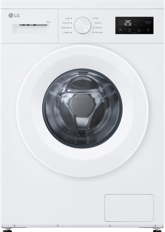 Tämän LG-pesukoneen kapasiteetti on 9 kg, joten voit pestä paljon vaatteita samaan aikaan.