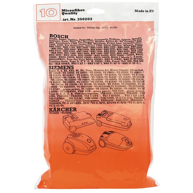 Nordic Quality -pölypussit sopivat Siemens-, Bosch- ja Kärcher-pölynimureihin. Pakkaus sisältää 10 pussia.