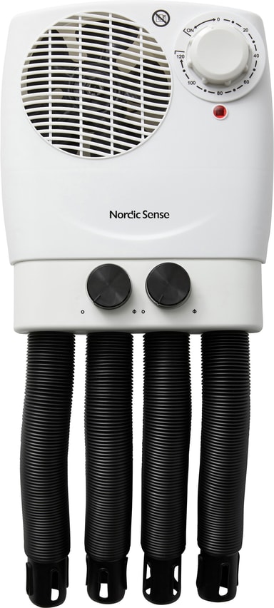Pidä kenkäsi kuivana ja hajuttomina seinään asennettavan Nordic Sense -kengänkuivaimen avulla. Laitteessa on säädettävä termostaatti, kahden tunnin ajastin sekä 350 W tehovaikutus. Voit käyttää kahta tai neljää säädettävää letkua tarpeen mukaan.