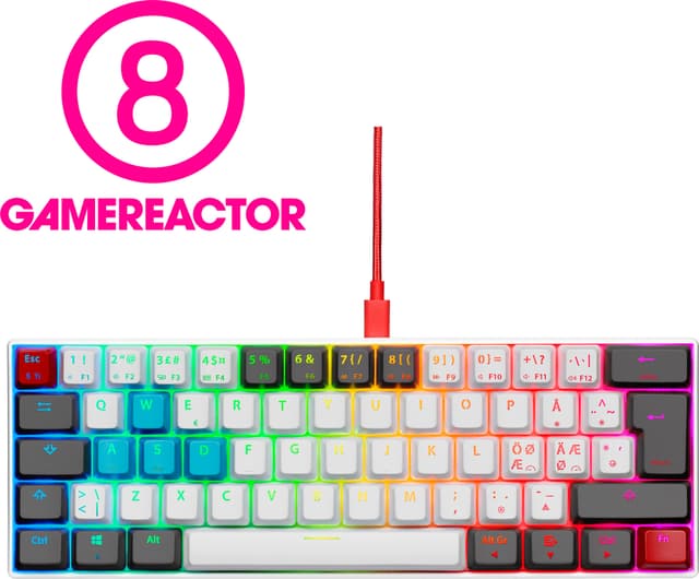 Muotoilu: Minimalistisesti muotoiltu kompaktin kokoinen näppäimistö on varustettu 62 näppäimellä. Näppäimistö on kooltaan vain 60% perinteisen näppäimistön koosta, joten se kulkee äärimmäisen helposti mukanasi esimerkiksi laneille ja turnauksiin.