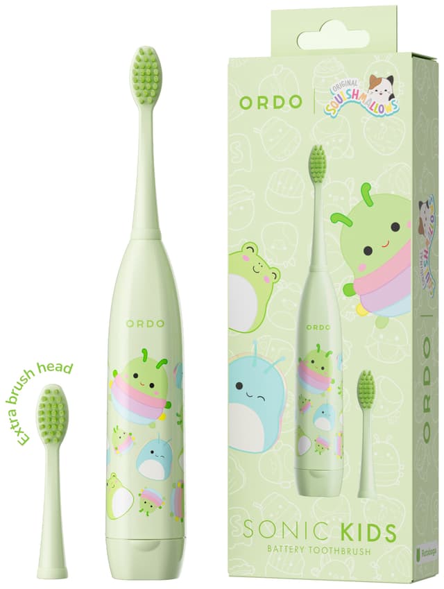 Ordo Sonic Kids -sähköhammasharja on suunniteltu lapsille 4 ikävuodesta ylöspäin. Siinä on soikea harjaspää hellävaraista ja tehokasta puhdistusta varten, sisäänrakennettu ajastin ja hauska Squishmallows-teema.Tutustu ominaisuuksiin