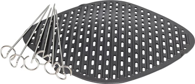 Philips Airfryer XXL -grillaussetin avulla valmistat herkullista kalaa ja lihaa sekä kasviksia. Settiin kuuluvassa grillauspohjassa on ainutlaatuinen rei’itetty ja tarttumaton pinta, jonka ansiosta ruoka irtoaa siitä helposti. Lisäksi mukana on myös kuusi grillivarrasta sekä reseptikirjanen. Kaikki osat voidaan pestä astianpesukoneessa.
