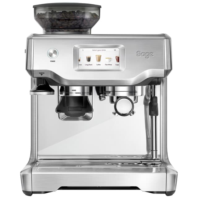Sage Barista Touch -kahvikoneessa on sisäänrakennettu, 18 asetuksella varustettu kahvimylly, PID-lämpötilaohjaus ja kätevä kosketusnäyttö, joiden ansiosta keität ammattitasoista kahvia käden käänteessä.