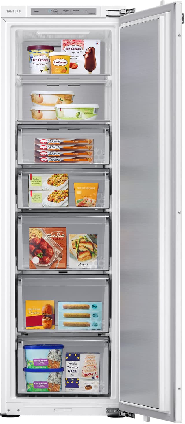 Samsung-pakastin tarjoaa turvallisen ja kätevän tavan säilyttää kaikki pakastettavat elintarvikkeet. Tämä integroitava pakastin tarjoaa suuren 218 litran tilavuuden ja se on varustettu NoFrost-teknologialla ja Metal Cooling -järjestelmällä.Tutustu ominaisuuksiin