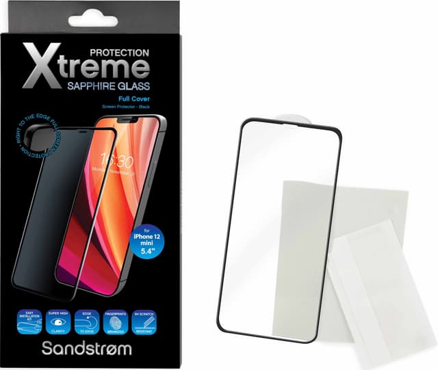 Ohut ja kestävä Sandstrøm-näytönsuoja suojaa iPhone 12 mini -älypuhelimesi näyttöä eikä vähennä näytön kosketusherkkyyttä.. Naarmuuntumattomasta ja erittäin kestävästä lasista valmistettu kaareva suoja peittää näytön täydellisesti ja sen kiinnittäminen on helppoa. Näytönsuoja hylkii myös sormenjälkitahroja. Koko näytön peittävässä suojassa on mustat reunat.