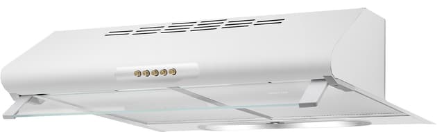 Muotoilu: Kaapiston alle asennettava valkoinen liesituuletin sulautuu mainiosti jokaiseen moderniin keittiöön.