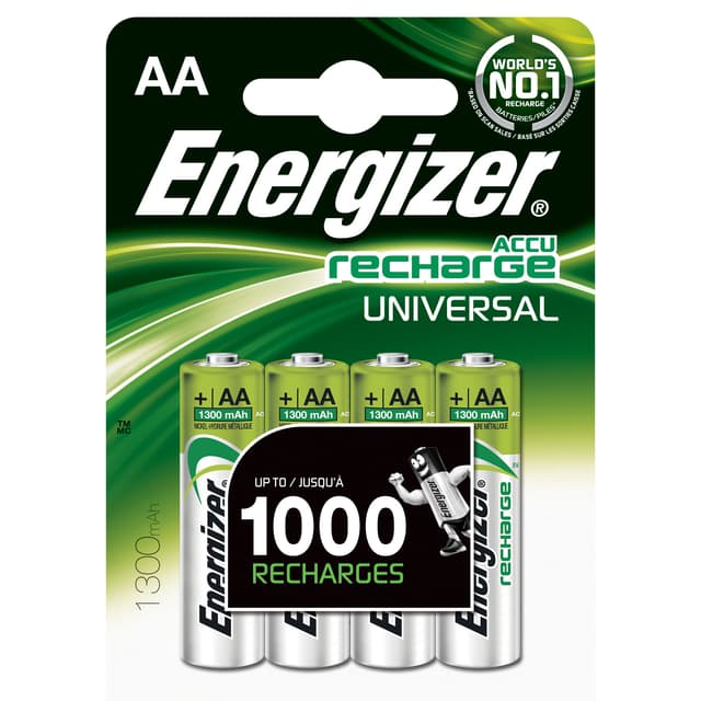 Pakkaus ladattavia Energizer AA/LR6 Ni-Mh 1300mAh -paristoja, jotka kestävät jopa 1000 latausta. Pakkaus sisältää 4 paristoa.Tutustu ominaisuuksiin