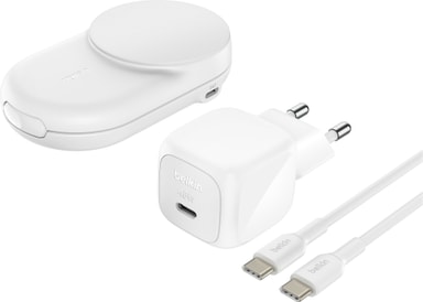 Belkin 25 W Qi2 2in1 magneettinen laturi (valkoinen)