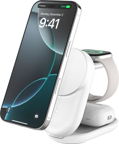 Belkin 25 W Qi2 3in1 magneettinen laturi (valkoinen)